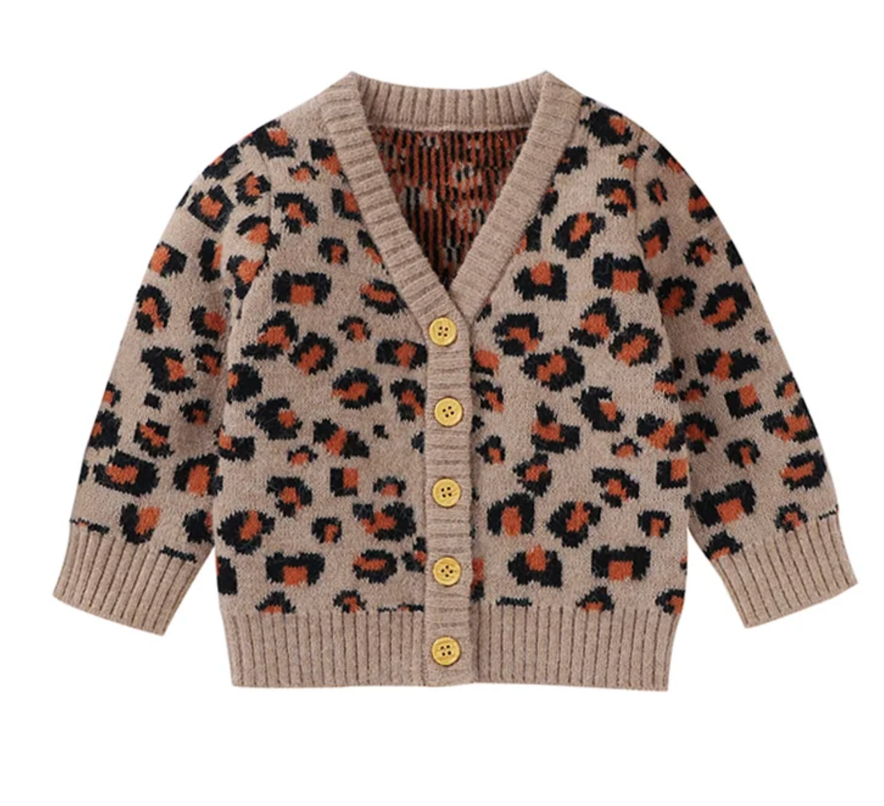 brings both style and comfort to your little one’s wardrobe. Made with soft, high-quality knit material, this cardigan features an eye-catching leopard pattern and a button-up design for easy wear.