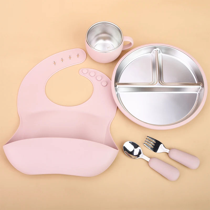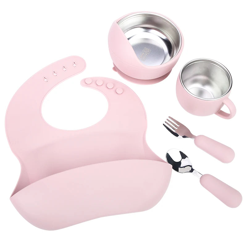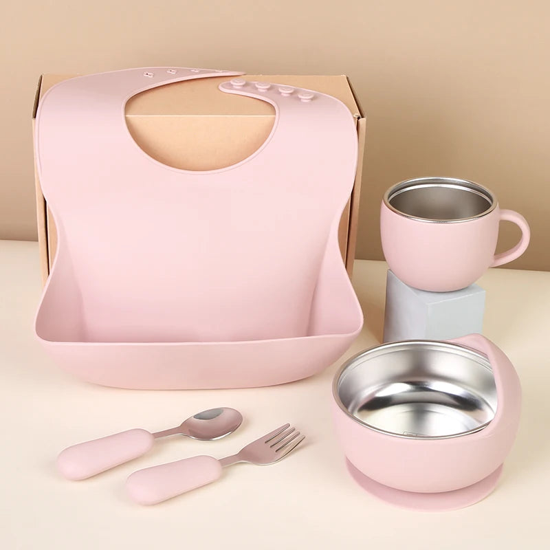 LittleMaylah™ Baby Bib Plates Bowl Spoon Tableware Silicone Baby Feeding Gift Set