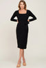 LittleMaylah™ Square Neck Belted Maternity Dress – Long Sleeve Elegant Midi Dress for Pregnancy & Postpartum